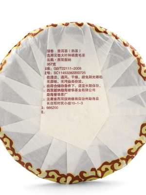 Это превосходный шу пуэр (готовый, ферментированный), произведенный по уникальной технологии «Вилла Нуова» в 2020 году. Чай прессован в классический блин, вес которого может незначительно варьироваться (от 315 до 357 г) в силу ручной работы, что подтверждает его аутентичность. Идеально сбалансированный, он предлагает насыщенный, бархатистый вкус без резких тонов, характерных для слишком молодых шу пуэров.