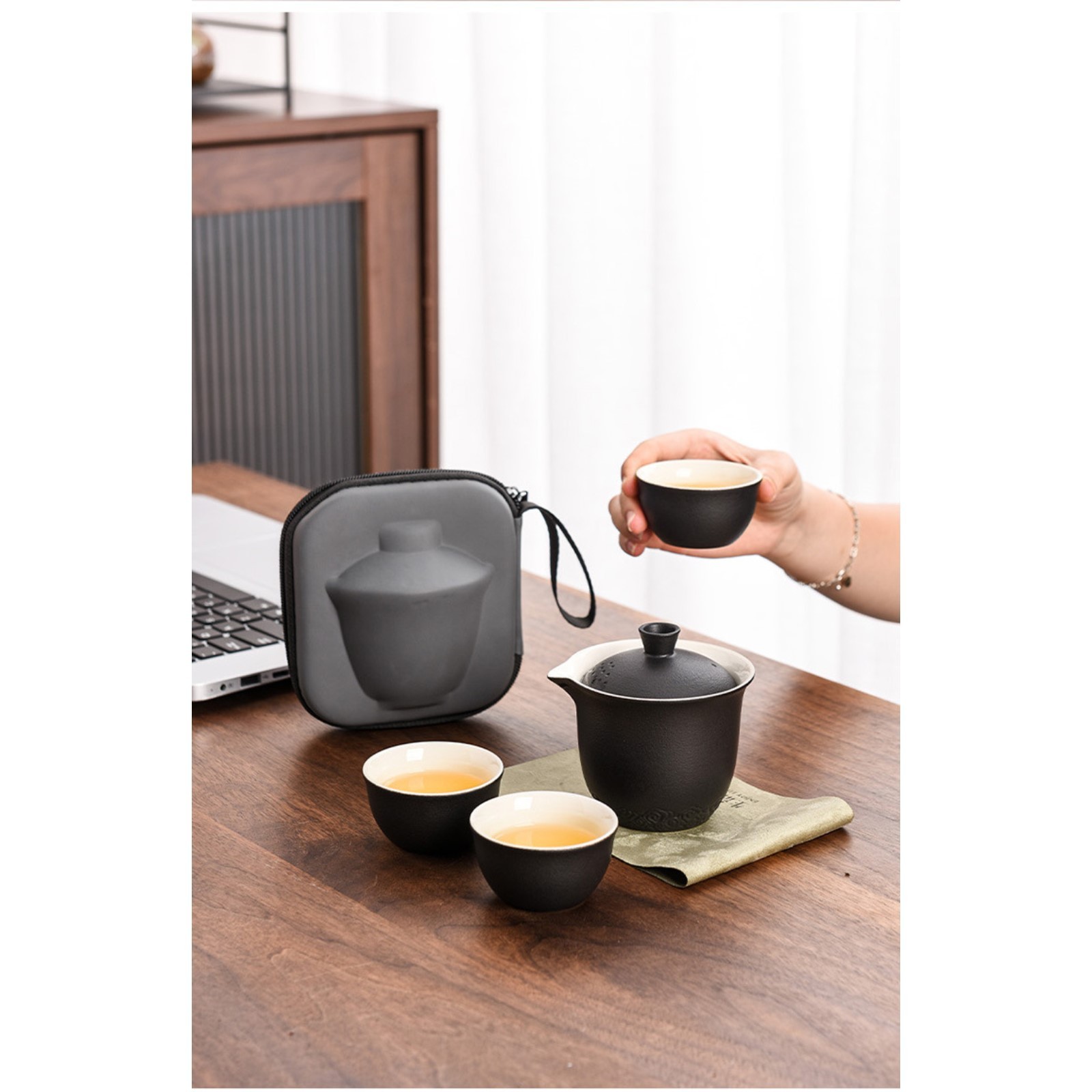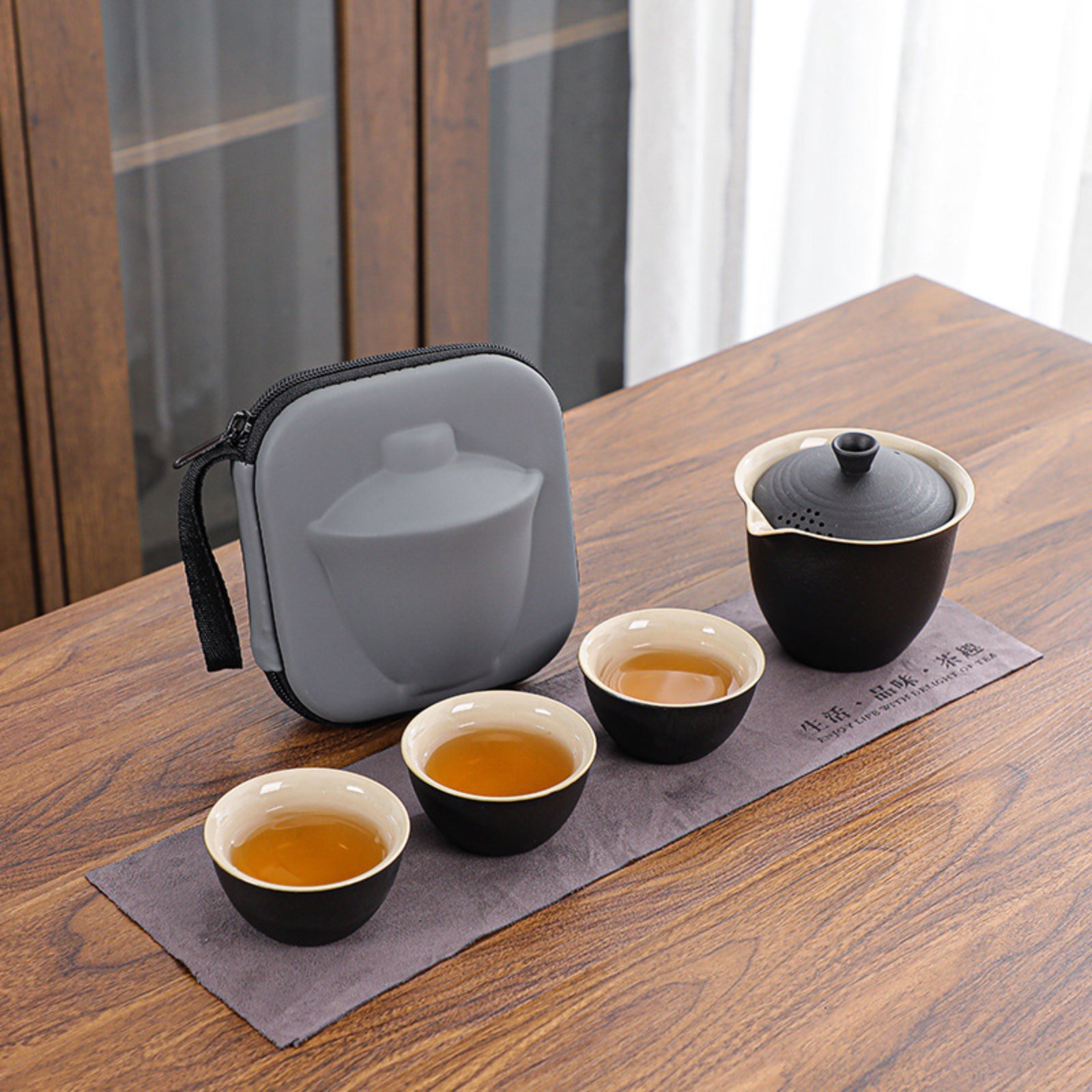 Портативный чайный набор, благодаря компактному чехлу с ручкой, удобно брать с собой на природу, в гости, на дачу. Посуда подходит как для торжественных чайных церемоний, так и для повседневного домашнего использования. Изделие изготовлено из прочной керамики.